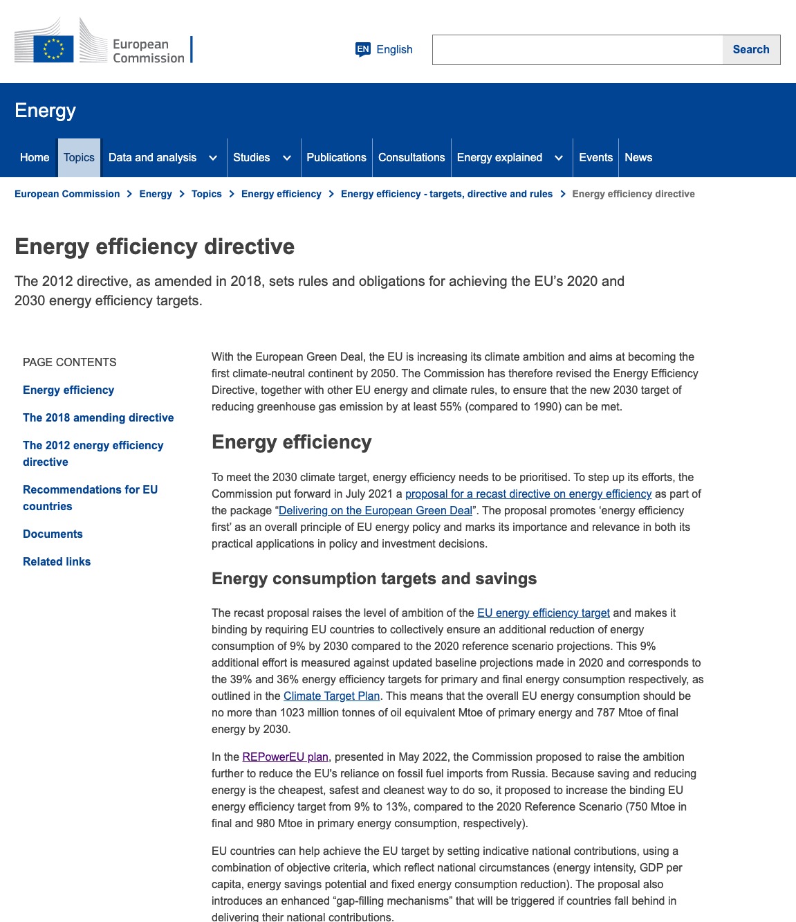 Los requisitos de etiquetado energético para los distintos grupos de productos se crean en virtud del reglamento marco de etiquetado energético de la UE, en un proceso coordinado por la Comisión Europea. 15 grupos de productos requieren una etiqueta energética.