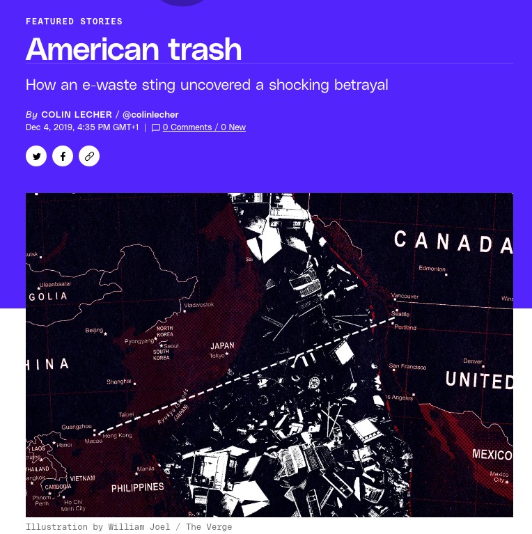 Electronics can be hazardous when disposed of improperly, and the Basel Action Network investigates the underground world of the e-waste trade. The nonprofit group secretly embeds trackers in discarded devices, then hands them to recyclers to see where they end up, exposing bad practices in the process.