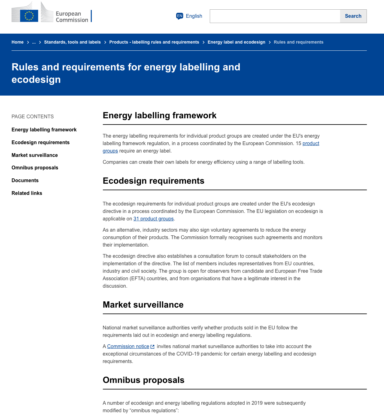 The energy labelling requirements for individual product groups are created under the EU's energy labelling framework regulation, in a process coordinated by the European Commission. 15 product groups require an energy label.